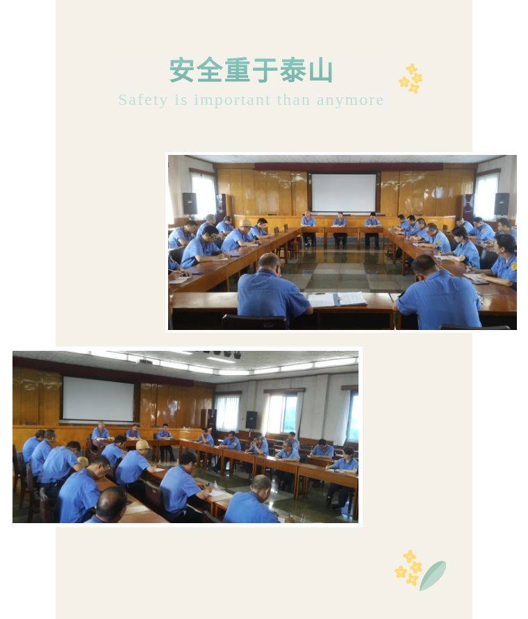 安全檢查后,(集團)公司召開了全體技安員會議,會上總結了被檢單位存在安全隱患及不足之處,并制定了相應的整改措施。